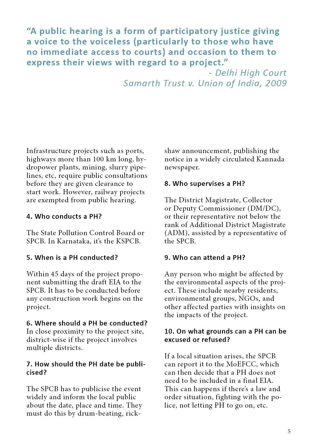 Public hearings are meant to familiarise people with large infrastructure projects coming up in their vicinity. It is an important part of the EIA (Environmental Impact Assessment) process.